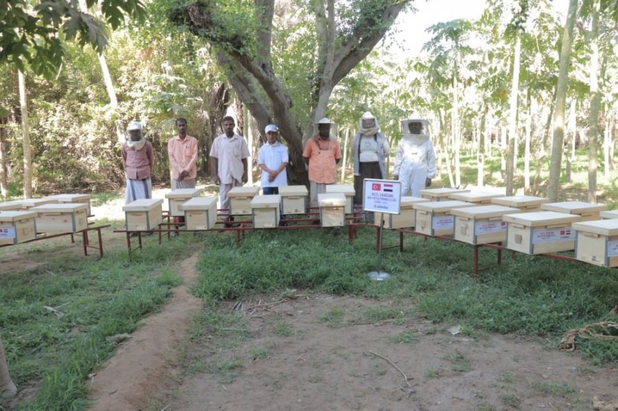 Bu kapsamda, Marib'de yaşayan 30 mülteci aileye arıcılıkla ilgili eğitim verilerek, arı kovanları ve gerekli ekipmanlar dağıtıldı. Meşhur olan ve yurt dışına da satılan Yemen balı sayesinde mülteci aileler geçimlerini sağlayabilecek.