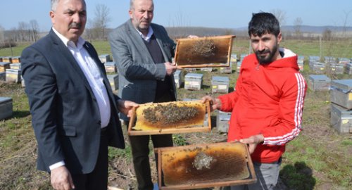 Pekbay'ı yaşı geçmiş olsunni ileten Sakarya Yetiştiricileri Birliği Başkanı Mustafa Ör, kovanlarda incelemelerde bulundu.