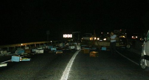 Kaza, sabaha karşı 05.00 sıralarında Armutalan -Datça yolu üzerinde meydana geldi.Hasan Arslan isimli arıcının kullandığı arı yüklü kamyonet henüz belirlenemeyen sebepten kontrolden çıkarak karayolu kenarındaki duvara çarptı. Kazada, sürücü Hasan Arslan ve Mehmet Özatan yaralandı.Yaralı arıcılar ambulansla hastaneye sevk edilerek tedavi altına alındı. Kaza nedeniyle Marmaris Datça yolu trafiğe kapandı.Polis ve itfaiye ekipleri çarpmanın etkisiyle yola devrilen kovanlardan çıkan arıların saldırısına uğradı. 3 polis ile bir itfaiye erini çok sayıda arı soktu. Arı sokmasından etkilenen bir itfaiye eri hastaneye kaldırılarak tedavi altına alındı. Polis,kaza yerinden geçen arıcıların yardımıyla yola savrulan kovanları kaldırıp trafiği tek şeritten açarak araçların geçişini sağladı.
