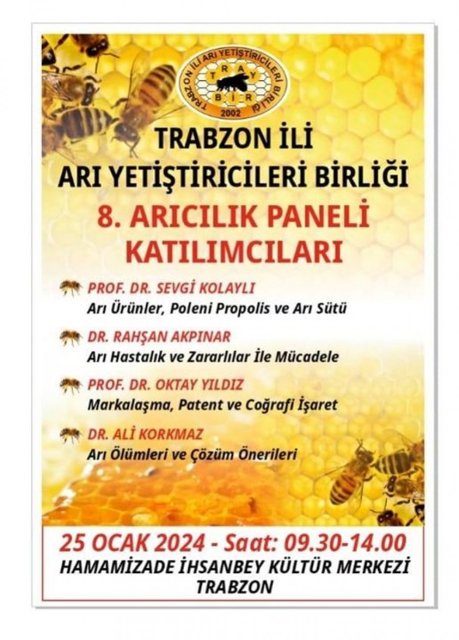 Kongre ve Fuarlar Arıcılık KongreleriArıcılık FuarlarıTarım FuarlarıArıcılık FestivaliArıcılık ÇalıştayıDünya Arı GünüArıcılık KonferansıArıcılık SemineriArıcılık Eğitimi 25 Ocak 2024 Trabzon 8.Arıcılık Paneli 25 Ocak 2024