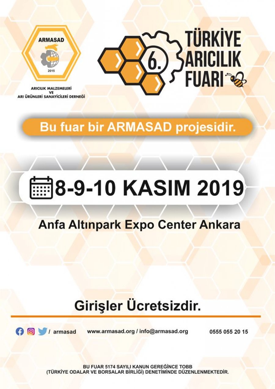Kongre ve Fuarlar Arıcılık KongreleriArıcılık FuarlarıTarım FuarlarıArıcılık FestivaliArıcılık ÇalıştayıDünya Arı GünüArıcılık KonferansıArıcılık SemineriArıcılık Eğitimi 8-10 Kasım 2019 Ankara Armasad Arıcılık Fuarı 8 Kasım 2019 https://www.armasad.org/?fbclid=IwAR3FNje0M7mIInLfCMzvVi2lT9IsyP21zHOf7NWd1H620jQgRoEVlOkX1cs