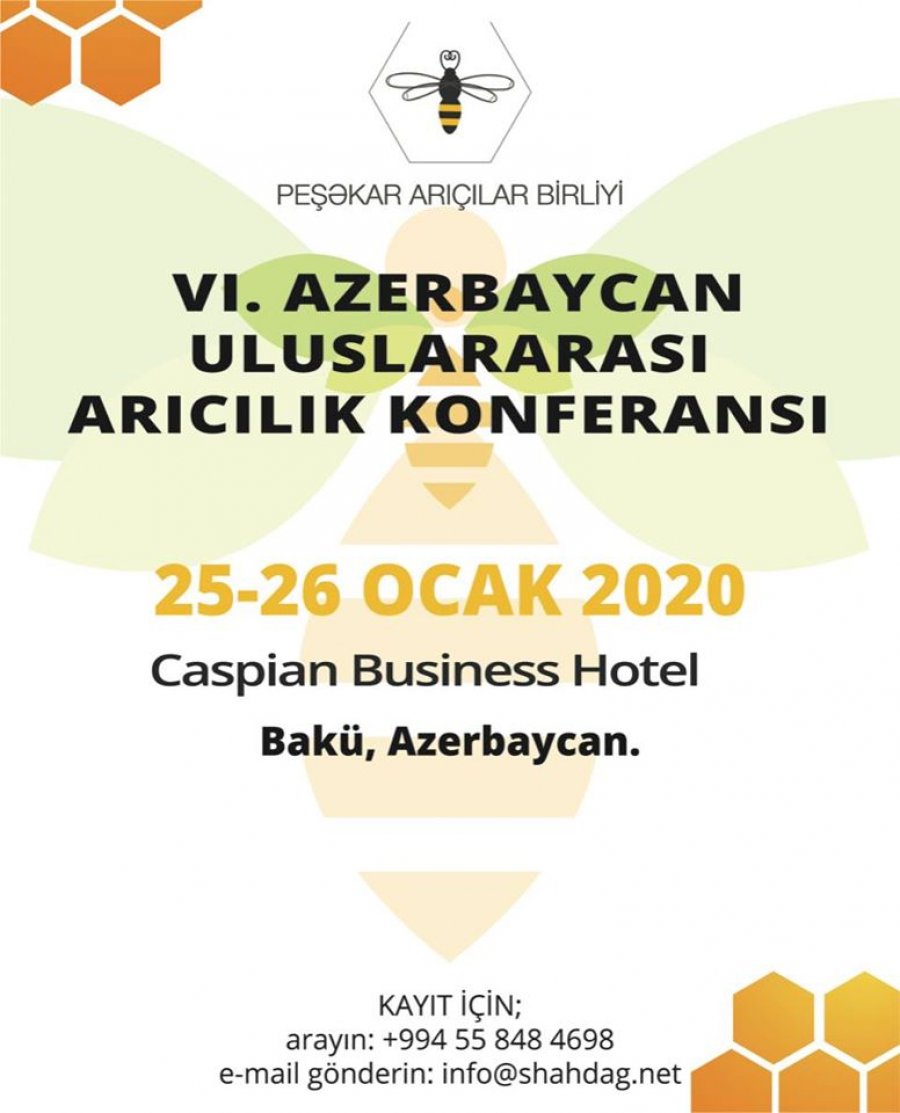 Kongre ve Fuarlar Arıcılık KongreleriArıcılık FuarlarıTarım FuarlarıArıcılık FestivaliArıcılık ÇalıştayıDünya Arı GünüArıcılık KonferansıArıcılık SemineriArıcılık Eğitimi 25-26 Ocak 2020 6.Azerbaycan Uluslararası Arıcılık Konferansı 25 Ocak 2020
